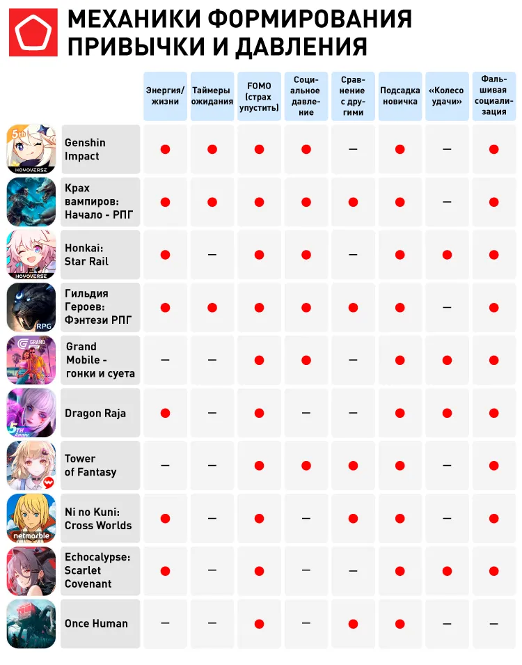 Эксперты поделили все существующие виды манипулятивных игровых механик на три типа: легкие механики вовлечения и удержания, механики формирования привычки и давления, агрессивные механики монетизации.