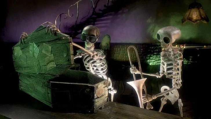 Вспомним Тима Бертона, который любит в анимационных фильмах мир живых рисовать в темно-серых тонах, а мир мертвых — ярким и красочным. Или работа других создателей — «Тайна Коко», где хоть и показано это разделение несколько иначе, но страх скелетов-мертвецов сопровождает главного героя на протяжении почти всего сюжета.