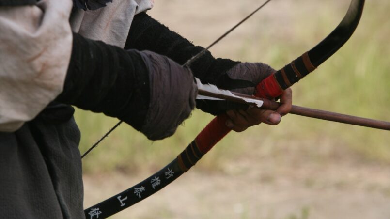 Когда он прицелился и натянул тетиву, на его локоть поставили чашку с водой, и он начал стрелять. Когда первая стрела поразила цель, вторая уже была в тетиве, и за ней сразу последовала третья. Сам он при этом даже не шелохнулся.